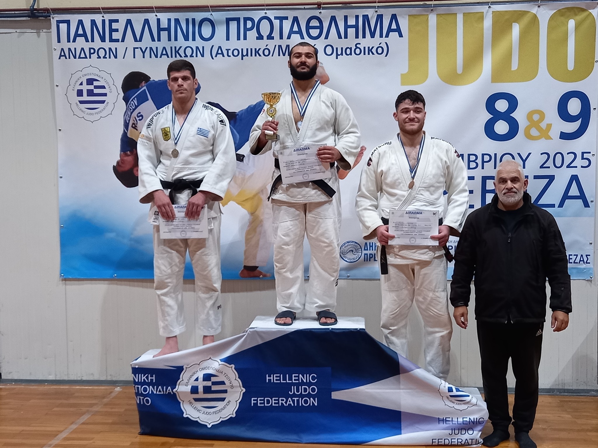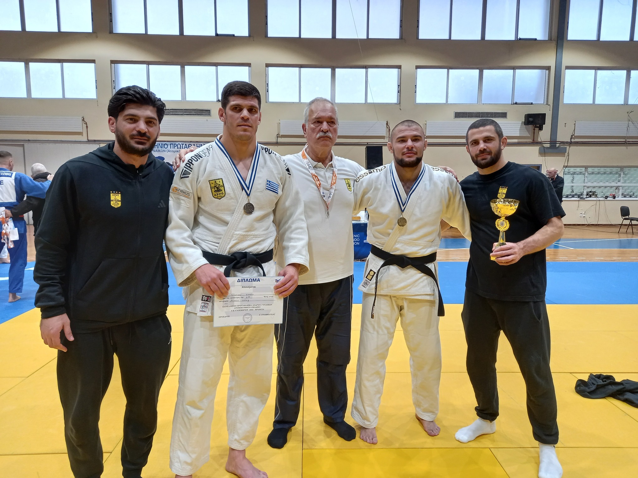 Δύο μετάλλια – ένα χρυσό και ένα αργυρό – ήταν ο απολογισμός των αθλητών του ΑΡΗ στο Πανελλήνιο Πρωτάθλημα Τζούντο Ανδρών, που διεξήχθη στην Πρέβεζα στις 8 Νοεμβρίου 2025.